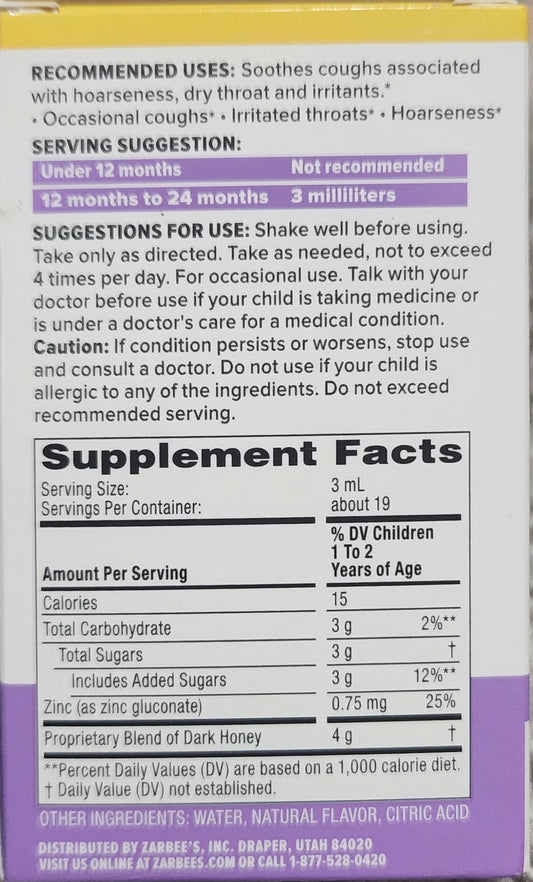Zarbee's Baby Cough Syrup + Immune with Honey & Zinc - Natural Cherry Flavor - 2 fl ozRegular price $5.00 USDRegular priceUnit price / per$14.00 USDSale price $5.00 USDSale