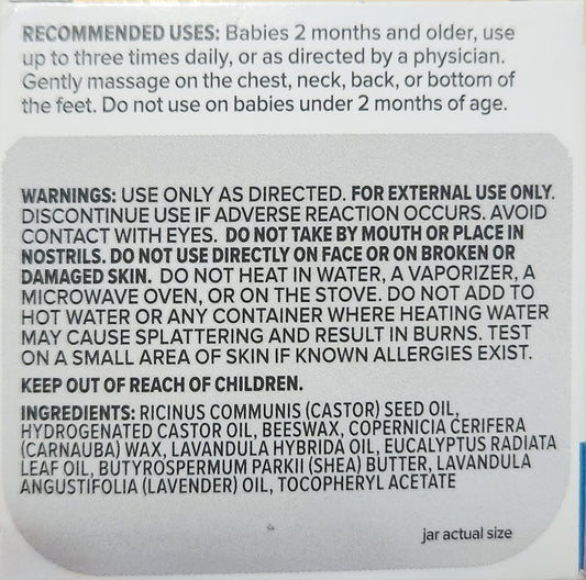 Zarbee's Baby Soothing Chest Rub with eucalyptus, lavender & beeswax Net WT 1.5oz (42g)Regular price $5.00 USDRegular priceUnit price / per$12.00 USDSale price $5.00 USDSale