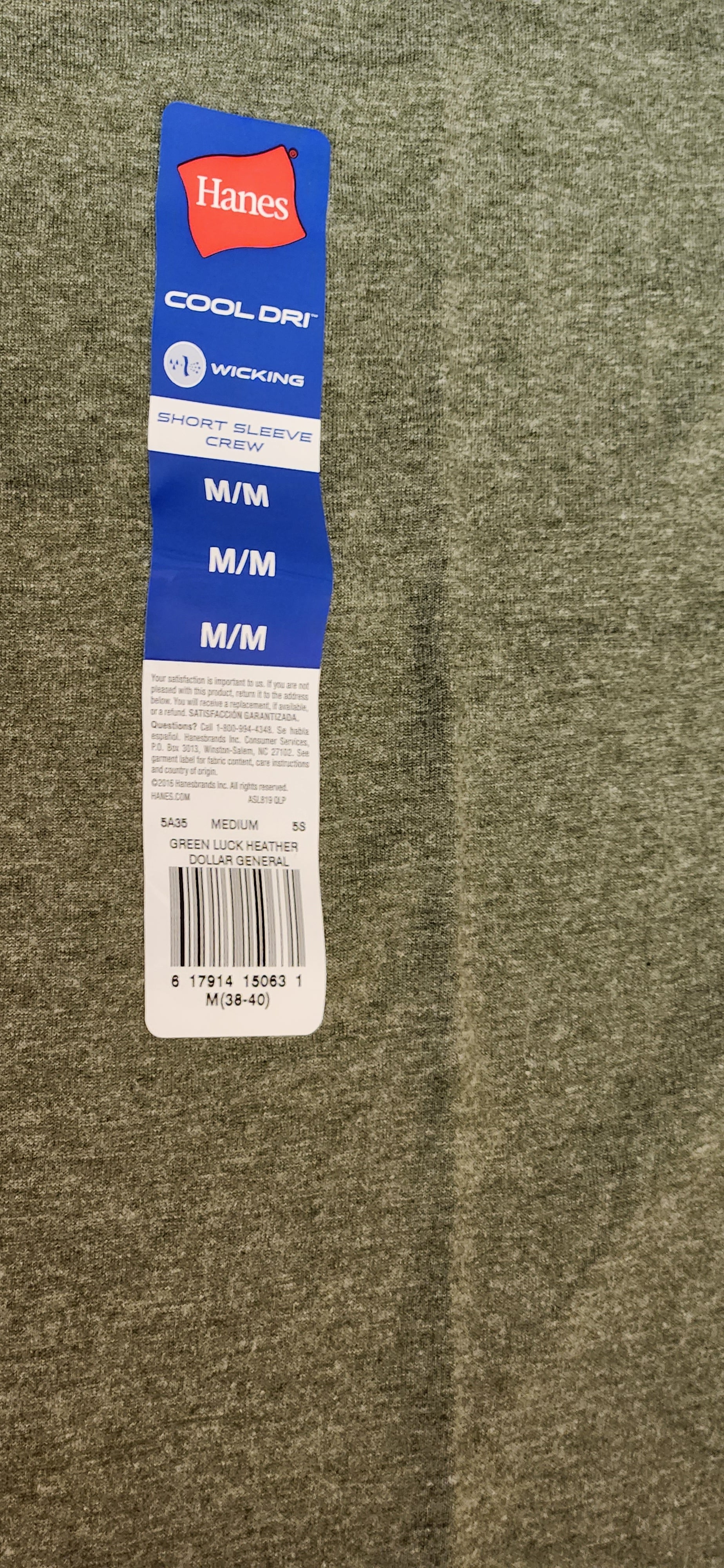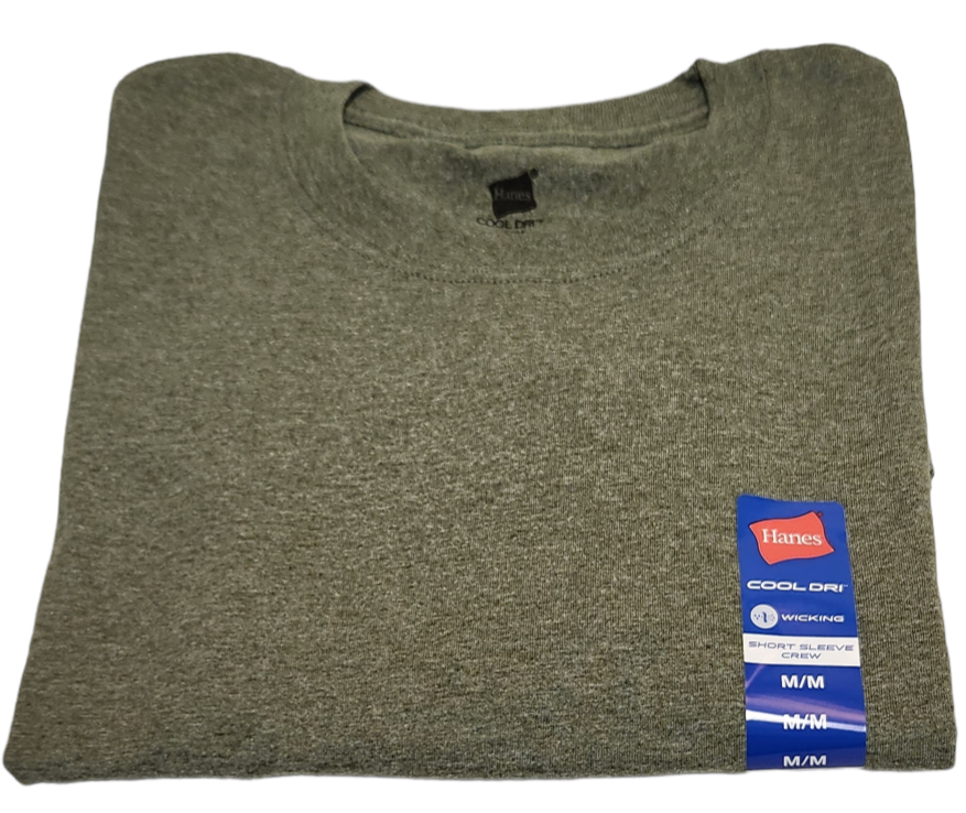 Hanes Cool Dri Wicking Short Sleeve Crew Green Luck Heather Size Medium