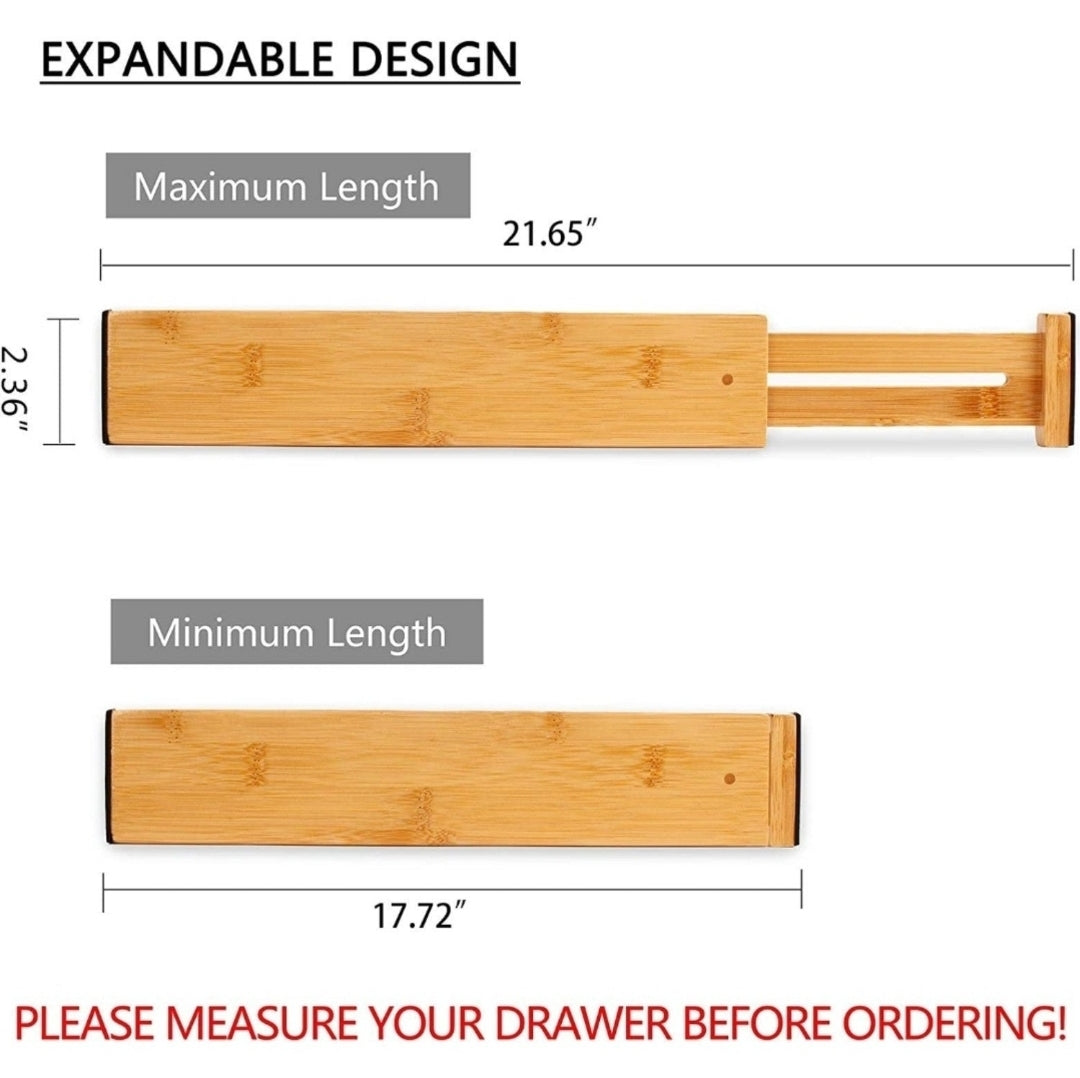 Huadi Bamboo Expandable Drawer Dividers (17.72"-21.65") 4-PACK