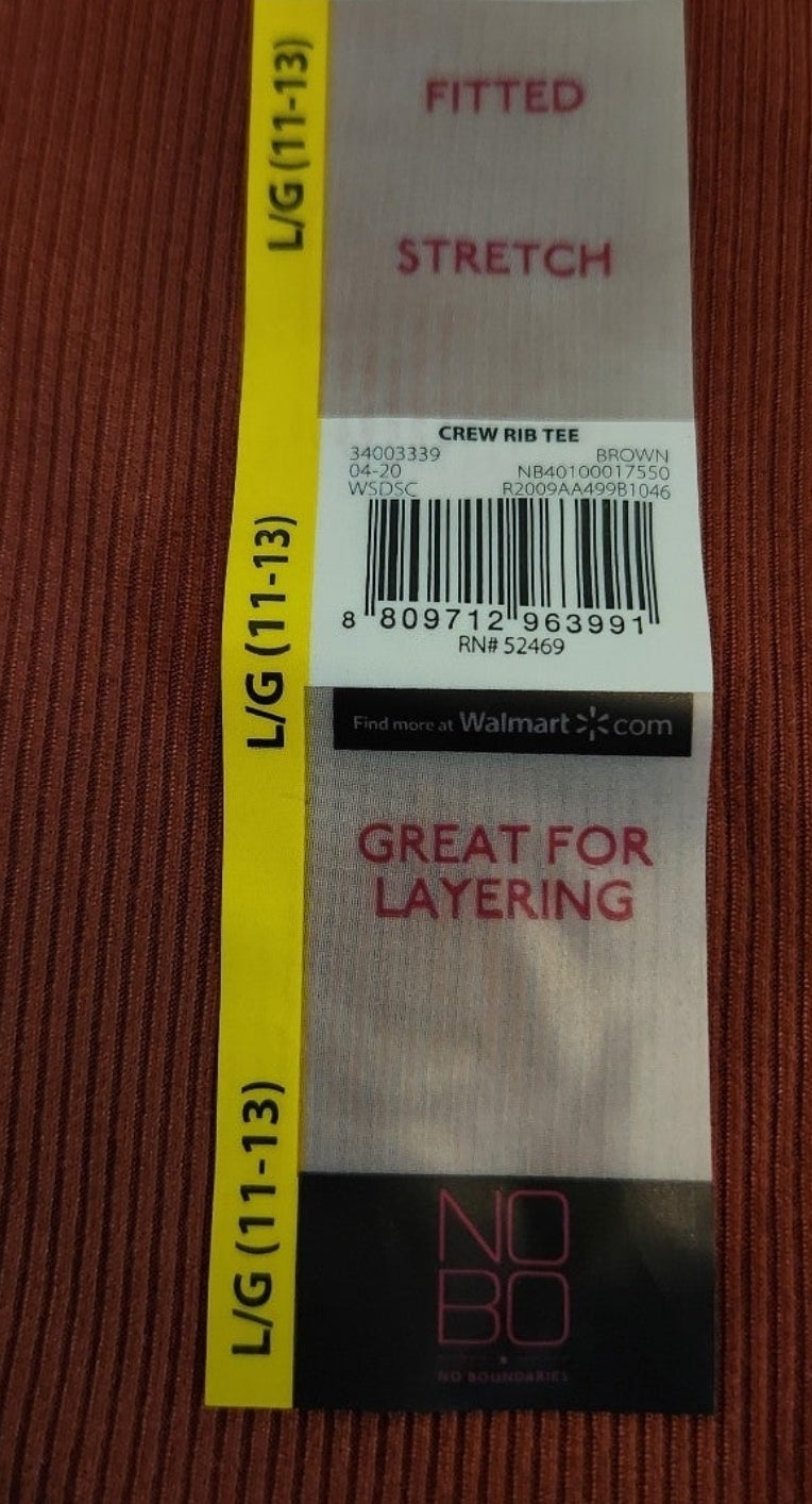 No Boundaries Fitted Stretch Ribbed Crew Neck Long Sleeve T-Shirt (Brown) Size Large (11/13)
