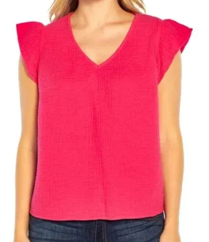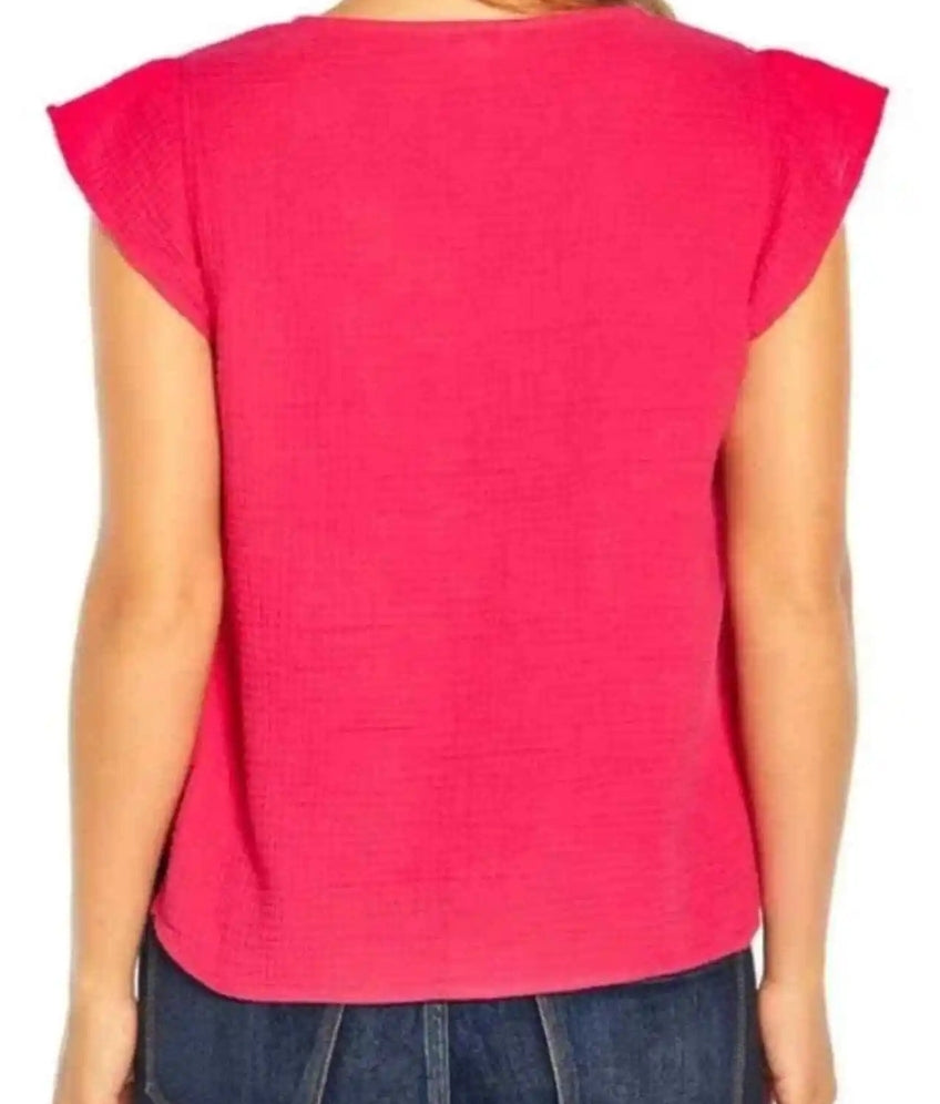 Three Dots Women's Double Gauze Fuchsia Top