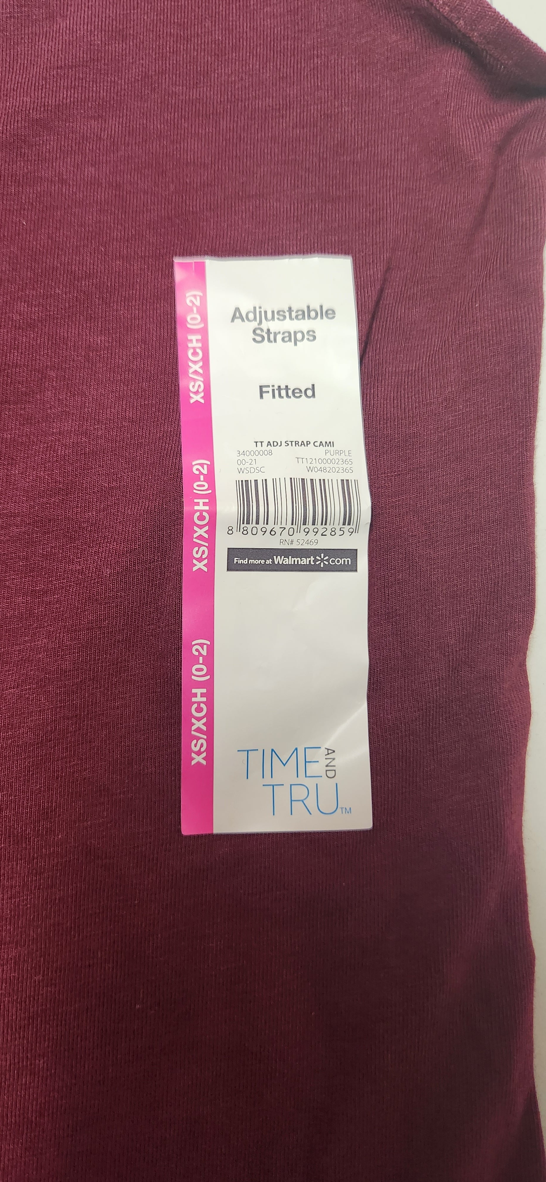 Time and Tru Adjustable Straps Fitted Cami (Purple) XS (0-2)