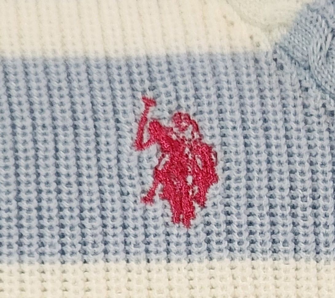 US Polo Assn Women's Blue And White Stripe Crew Neck Long Sleeve Sweater
