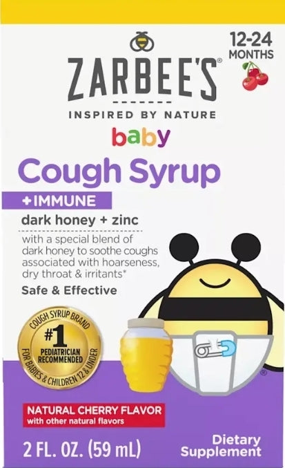 Zarbee's Baby Cough Syrup + Immune with Honey & Zinc - Natural Cherry Flavor - 2 fl oz