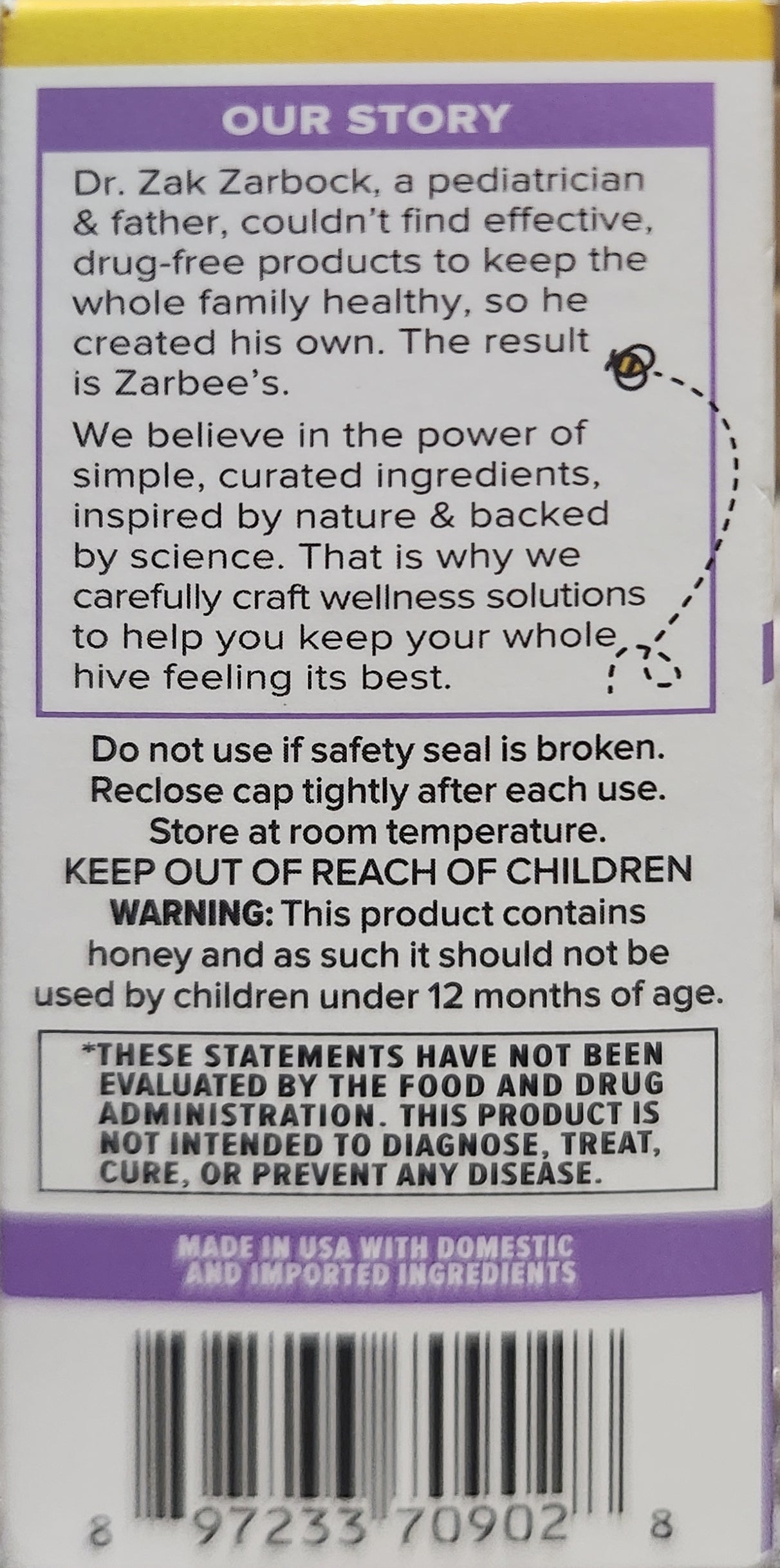 Made with a special blend of dark honey to soothe your little one's coughs associated with hoarseness; dry throat; & irritants* and zinc to support immune health*